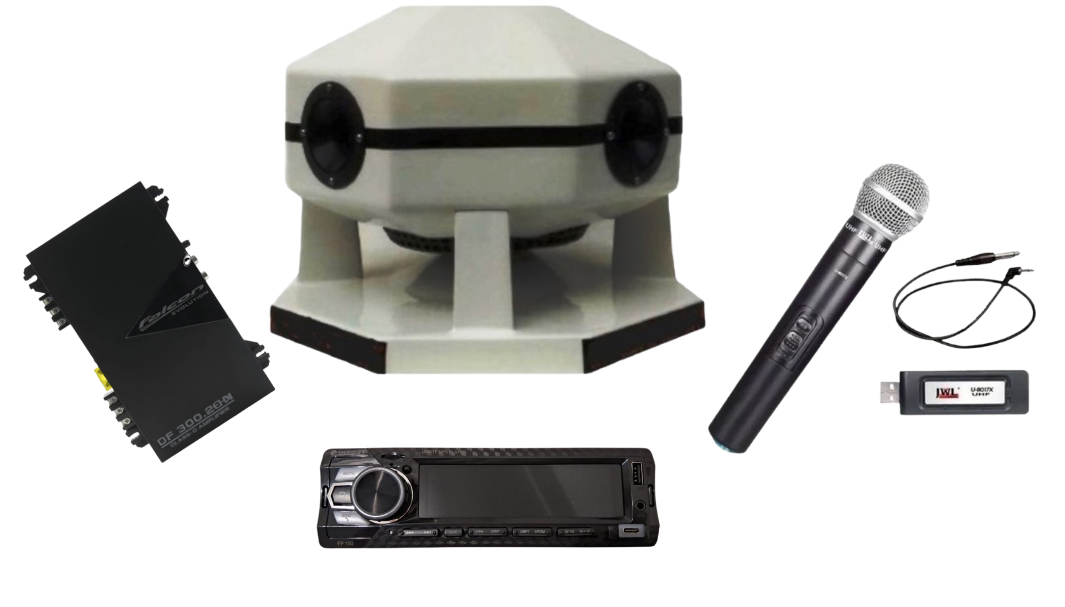 Kit Octo Propaganda Volante Fibrasom+Microfone s/fio + Rádio,