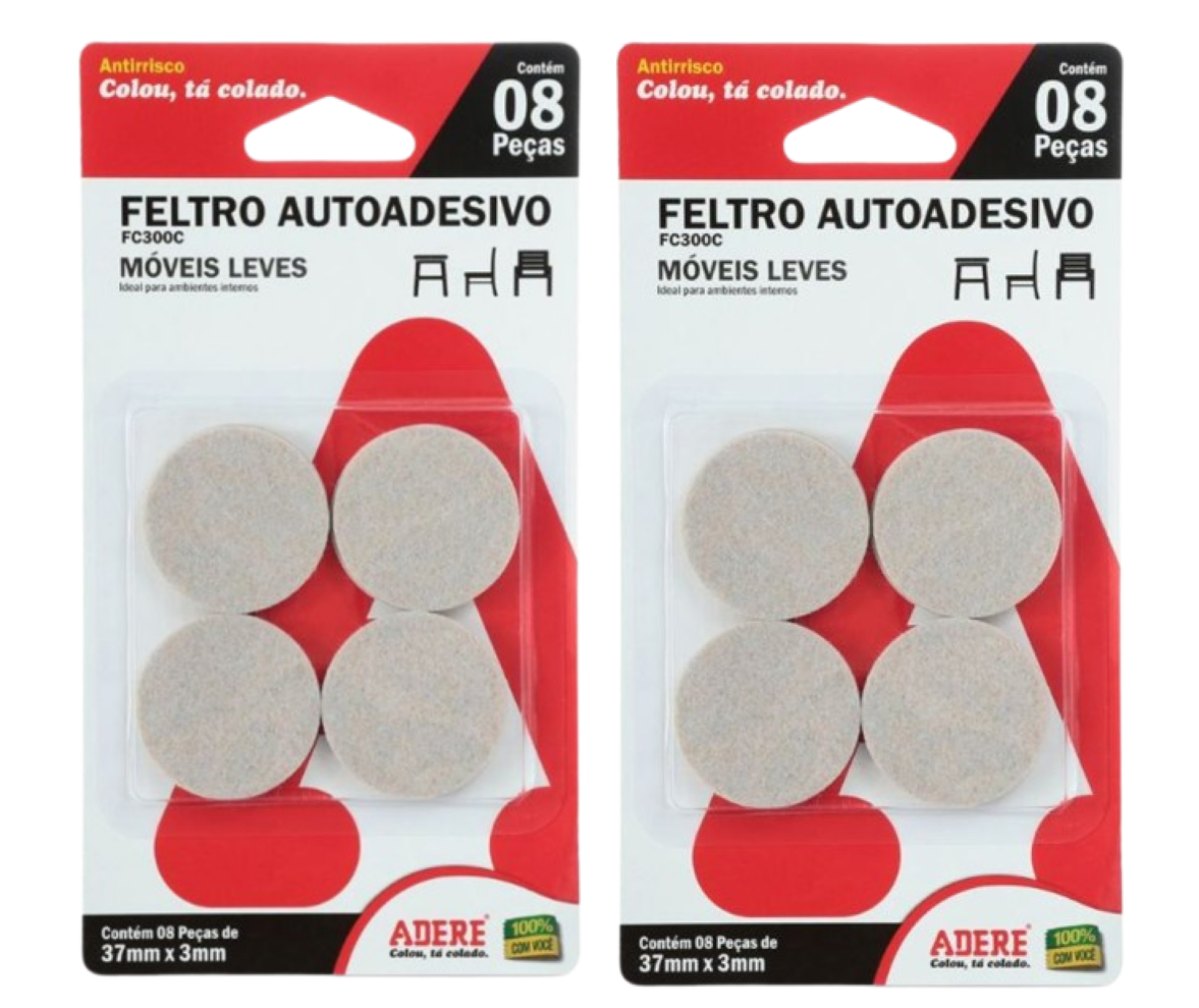 Feltro Protetor Adesivo Antirrisco Adere FC300C, redondo, 37 x 3 mm - 16 peças