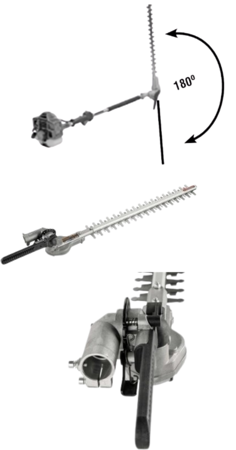 Possui articulação de 180°, proporcionando maior alcance para melhor acabamento. Indicado para uso em roçadeiras que possuem tubo com diâmetro de 26 mm e eixo cardan de 7 mm x 7 dentes. Ideal para podar cercas vivas, arbustos, entre outros. Após o uso, deve-se limpar e lubrificar as lâminas (óleo recomendado: SAE 20W-40). Pode ser utilizado nas roçadeiras Vonder: RGO 254 (68.04.100.254); RGO 2540C (68.04.200.254); RGP 254 (68.04.000.254); RGP 2540C (68.04.254.000); RGO 326 (68.04.100.326); RGP 326 (68.04.000.326) e RGP 3260C (68.04.326.000). Pode ser utilizado em roçadeiras multimarcas desde que atenda a característica de encaixe e potência mínima de 25 cc.