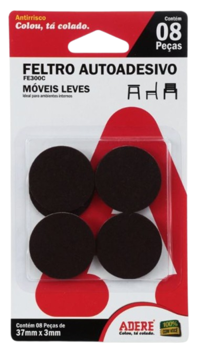 Feltro Protetor Adesivo Antirrisco Adere FE300C, redondo, 37 x 3 mm - 8 peças / COR ESCURA