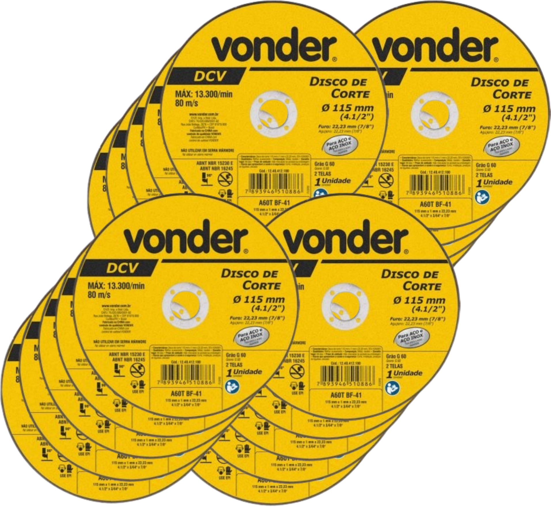 kIT COM 20 UNIDADES: Disco de corte 115,0 mm x 1,0 x 22,23 mm DCV VONDER