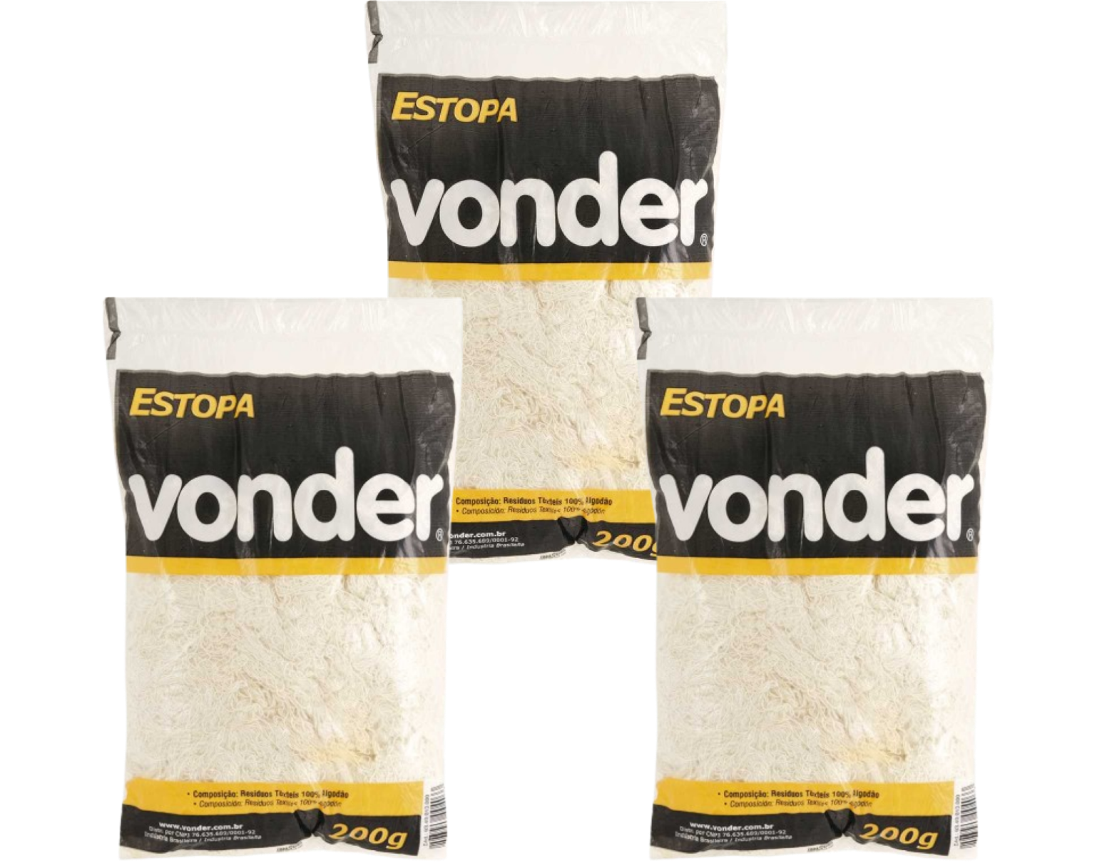 3 Pacotes com 200 g de estopa branca.